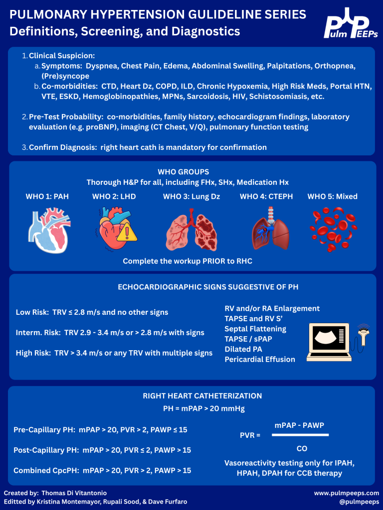 Today we’re kicking off another segment in our Guidelines Series, and doing a deep dive into the 2022 ESC/ERS Guidelines for the diagnosis and treatment of pulmonary hypertension. Over a series of episodes we’ll talk about the most recent updates to definitions around pulmonary hypertension, recognizing and diagnosing Group 1 – 5 pulmonary hypertension, risk stratification, and treatments. In this first episode, we will review the most recent definitions, including changes to the definitions that were new in 2022. We’ll then talk about recognizing and diagnosing pulmonary hypertension with tips and insights along the way.